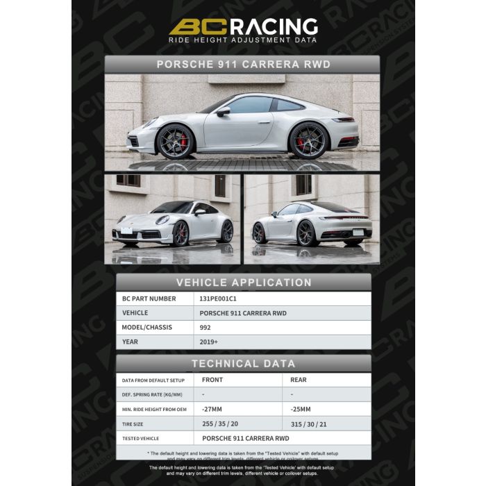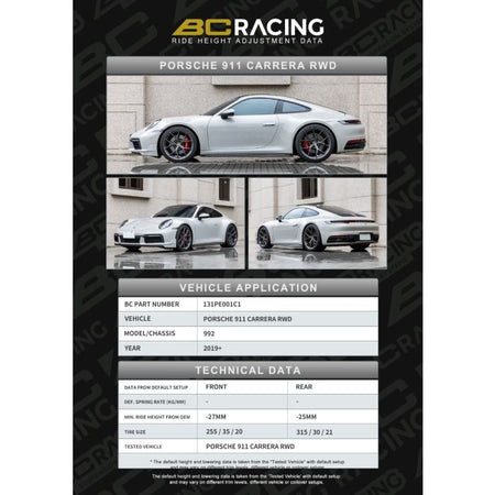 BC Racing PORCHE 911 CARRERA RWD 992 (19+) -31MM -35MM ASP CAMBER FRONT